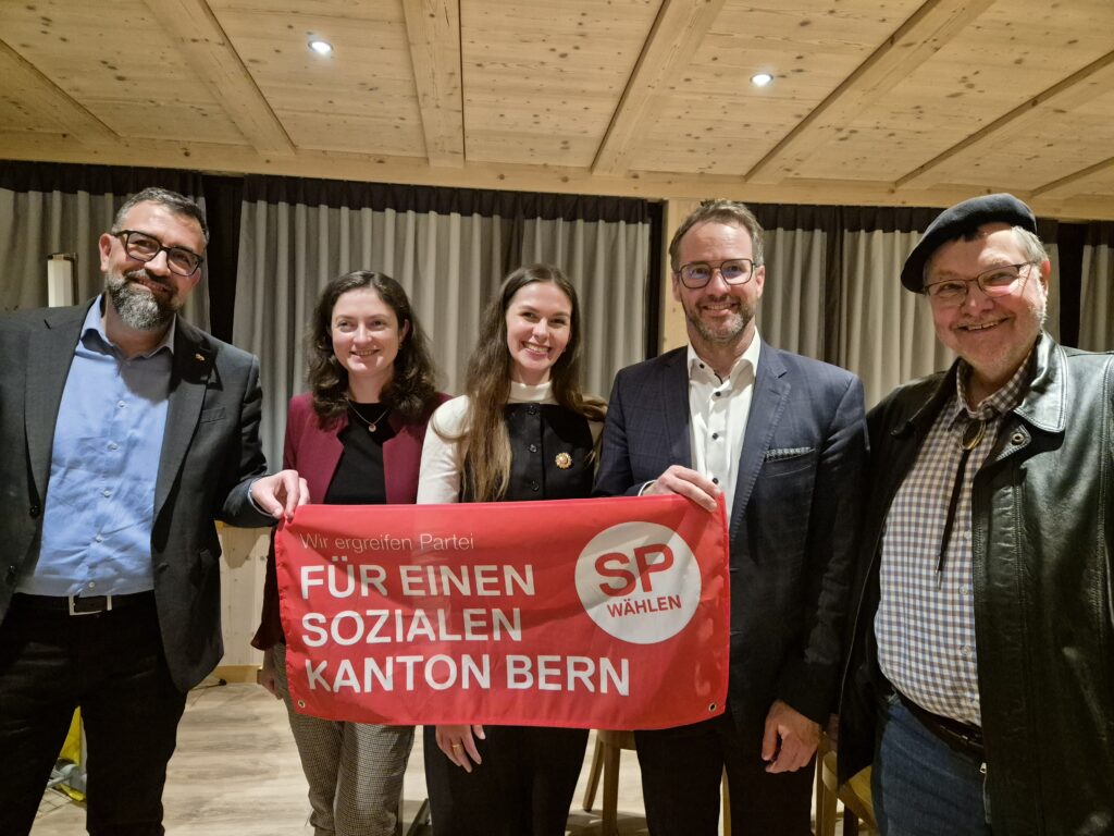 Um auch in der Regierung die nötige Korrektur zu bewirken, ist ein Sitzgewinn der SP zwingend. Reto Müller (Stadtpräsident Langenthal) und Hervé Gullotti (Gemeindepräsident Tramelan), die beide nach Huttwil kamen, treten zur Wahl an, zusammen mit der bisherigen SP-Regierungsrätin Evi Allemann und Aline Trede (Grüne). In dem für die Beteiligten erfreulichen Gespräch liessen die beiden erkennen, dass sie scharf analysieren, gut zuhören und umsetzen können, über eine derart gute politische und Führungserfahrung verfügen, dass sie damit nicht nur konkurrierende neu antretende Kandidierende überflügeln können, sondern auch bisherige. Zusammen wollen sie die Regierungstätigkeit wieder neu an den Bedürfnissen der Bevölkerung orientieren: Die Bereiche Gesundheit und Soziales sollen vermehrt den Menschen statt dem Profit dienen, der Zugang dazu verbessert werden. Die Krankenkassenprämien dürfen nicht zum Armutsrisiko werden und die Steuergeschenke für Vermögende gehören gestoppt. Zudem ist es wichtig, die Bildung zugänglich und auf die zukünftigen Herausforderungen hin zu gestalten. Die Wirtschaft darf nicht von kurzfristigen Profitinteressen untergraben werden, sondern muss mit den sozialen, ökologischen und technologischen Notwendigkeiten Hand in Hand gehen. Die erneuerbaren Energien bieten sowohl bei der Versorgung wie auch bei den Jobs ein Potenzial, das viel besser ausgeschöpft werden muss als bisher.